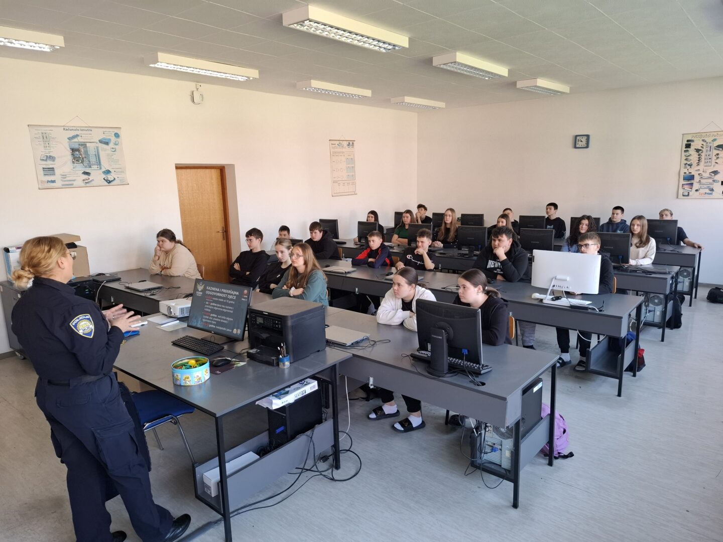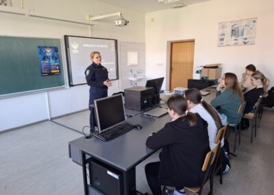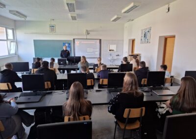 Tijekom predavanja učenici su upoznati s oblicima elektroničkog nasilja (cyberbullyinga), rizicima dijeljenja osobnih podataka te načinima zaštite na društvenim mrežama. Poseban naglasak stavljen je na važnost odgovornog korištenja interneta te na pravodobno reagiranje u slučaju nasilja – obraćanjem roditeljima, nastavnicima ili policiji.